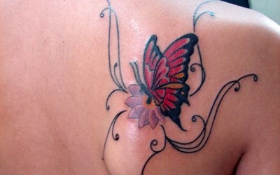 Selection of the picture to be painted plays a role in making it look delicate and tender. Butterfly tattoo designs including shape of heart, lips, moon, stars using typically feminine colors reflect romance. Knotted work and spiral patterns make it look good. Such a design coupled with butterfly tattoos on lower back portion of the body is a rare treat to watch and display. To give butterfly tattoo a more personal touch, people add their own names or those of their beloved. Various designs of feminine butterfly tattoos include designs of flowers (roses, daisies, lilies, and cherry blossoms), hearts, crosses, fairies, butterflies, suns, moons, stars, and astrological signs.